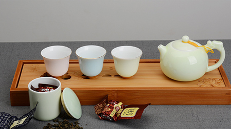 帶茶盤茶葉—6件套套組(青瓷款. 此款茶具以茶盤為外包裝禮盒,經(jīng)濟(jì)又環(huán)保,數(shù)量 - 價(jià)格區(qū)間:¥338 ~ 390